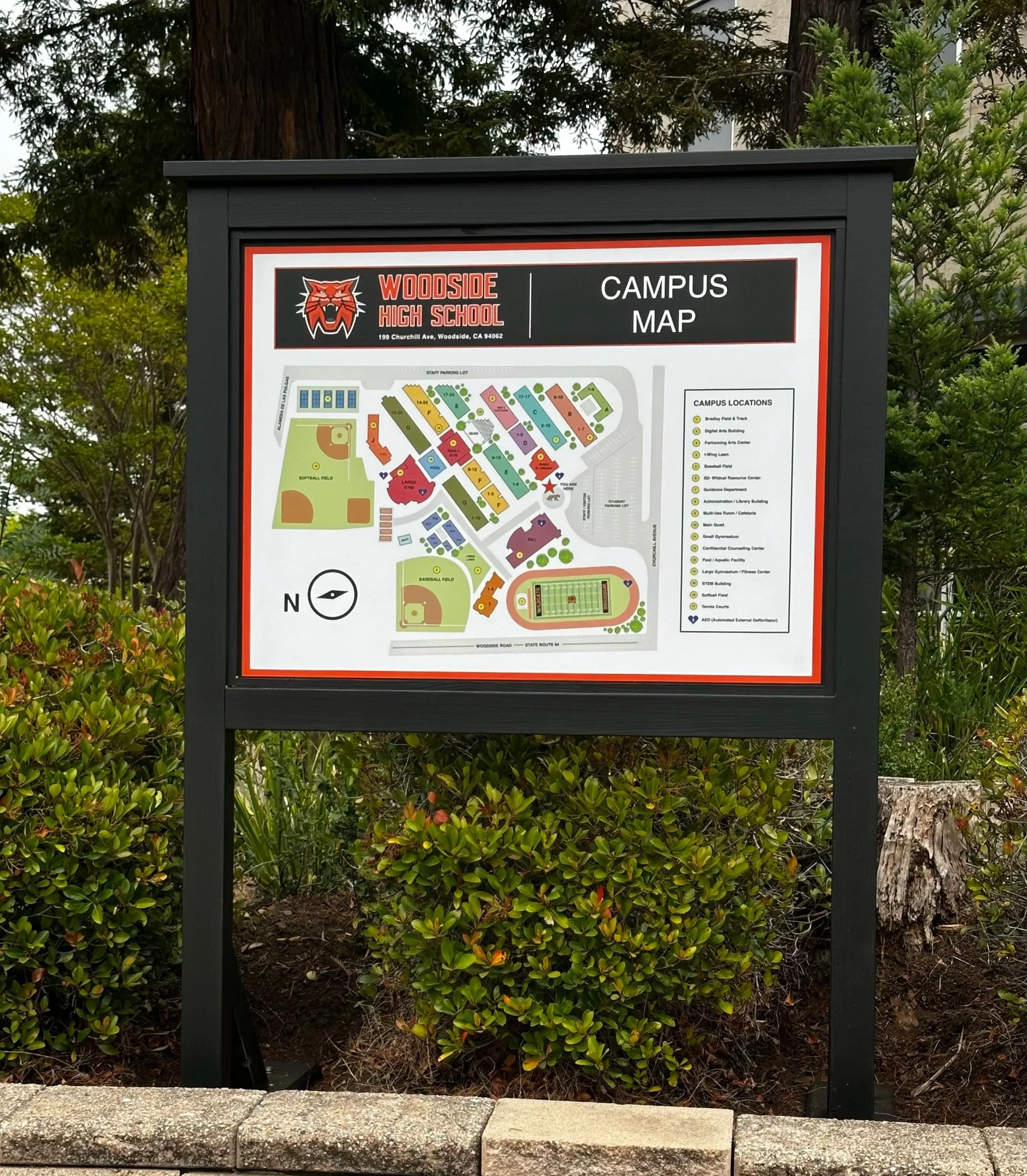 After reviewing the revised site maps, the principal of Woodside High School requested wayfinding signage to assist parents and families in navigating the campus during graduation. I collaborated closely with her to develop clear, intuitive maps that helped viewers understand their location and move through the campus with ease. Two versions were created to provide the appropriate orientation based on where each sign would be installed, ensuring a seamless and user-friendly navigation experience.
